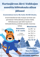 Ensimmäinen kerta 15.1. kello 15-16 Kitkalla Kortesjärven Järvi-Veikkojen suosittu hiihtokoulu alkaa jälleen! Ensimmäinen kerta Kitkalla 15.1 kello 15-16. Mukaan tarvitset perinteisen välineet ja iloista mieltä. |