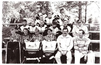 Historian havinaa vuodelta 1990 Kortesjärven keskuskentällä. Kuvassa ylhäältä vasemmalta Vesa Lammi, Olli Turja sekä Jukka Mattila sylissä Jussi Mattila,