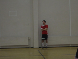 Mighty Dicksin ja Nuestro Sexon ottelu päättyi Dicksille lukemin 5-3. Loukola ja Lindholm odottelee että Mäenpää nappaa pallon Hakalalta. Olli seuraa silma tarkkana tilannetta